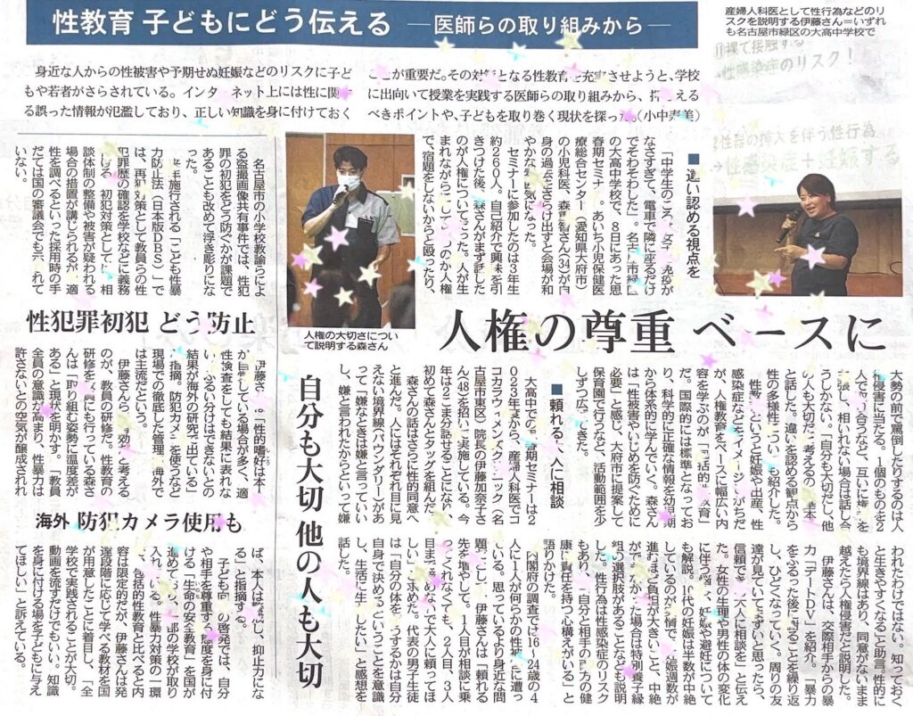 記事では、「性教育 子どもにどう伝える ~医師らの取り組みから~」と題し、性被害や予期せぬ妊娠などのリスクから子どもたちを守るため、そしてインターネット上の誤った情報から子どもたちが正しい知識を身につけることの重要性について取り上げられています。